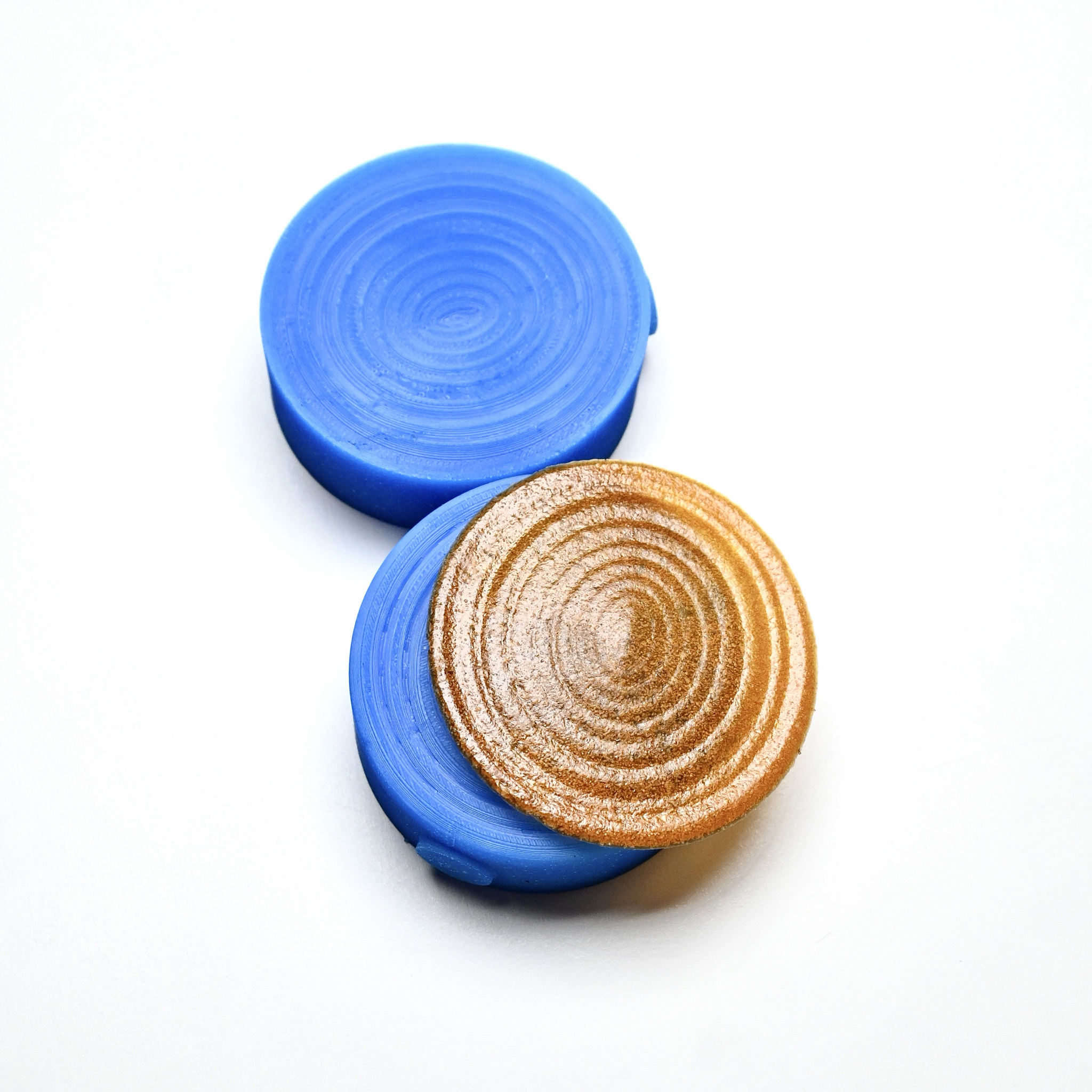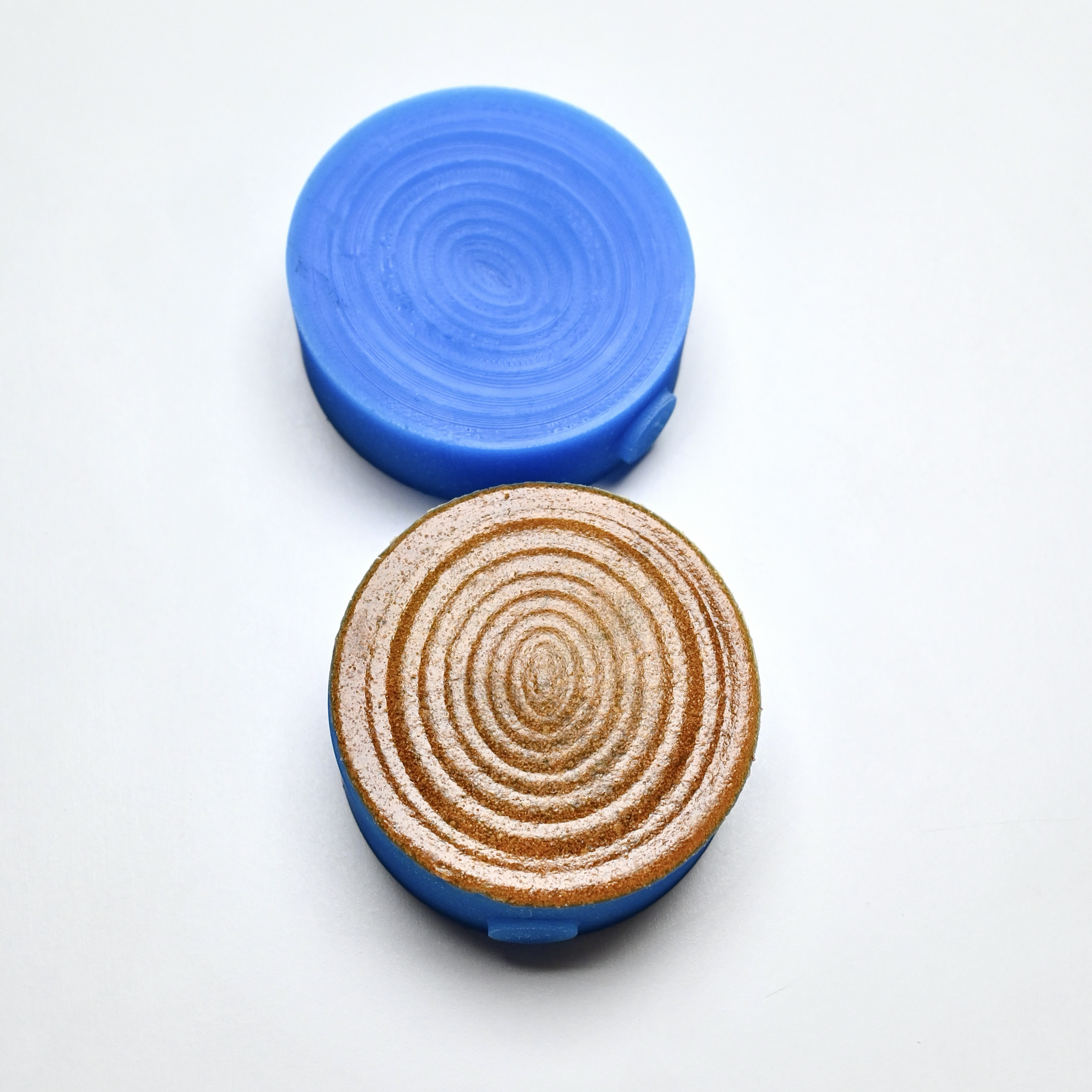 Résonance est un pressoir en silicone conçu pour créer un relief circulaire concentrique, régulier et profond, évoquant les ondes, la vibration et le mouvement.